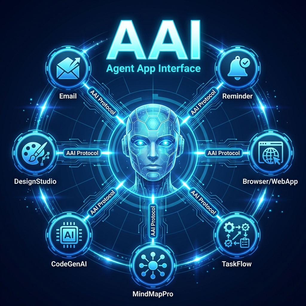 AAI gives every application -- desktop or Web App -- a standardized, machine-readable descriptor (aai.json) that tells Agents exactly what your app can do and how to call it.